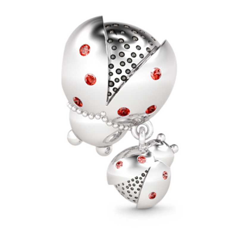 Gnoce "Be Thankful" 925 Sterling Silver Dangling Charm Cute Ladybug Charm Great Gift for Animal Lovers