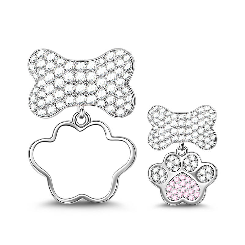 Paw Print & Bone Dangle Charm Pendant for Necklace with Zircon Stone
