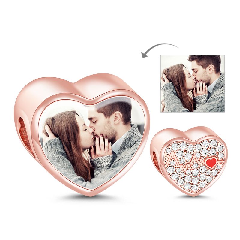 Beating Heart Photo Charm 925 Sterling Silver 18k Rose Gold Plated with Cubic Zirconia