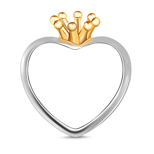 Gold Plated Crown Heart Design Engravable Silver Personalized Photo Charm