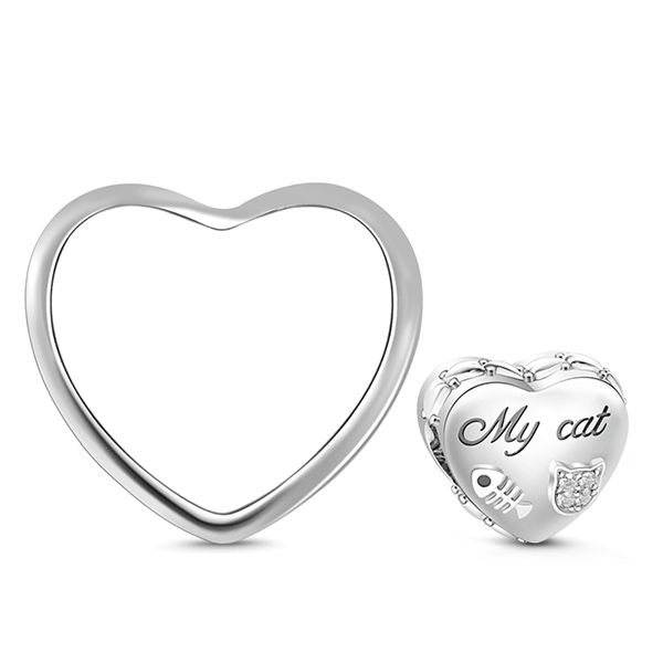 925 Sterling Silver heart Cute Animal Cat Photo Charm Bead