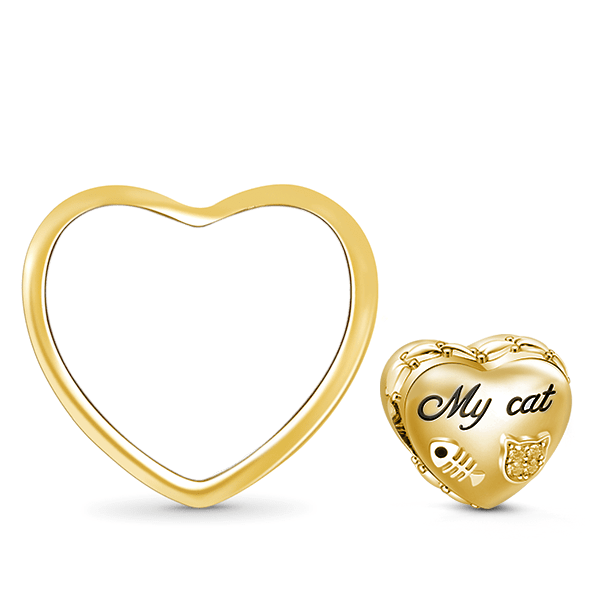 Gnoce 'When Cat Fall in Love with Fish' 18K Gold Plated Heart Cute Cat Photo Charm