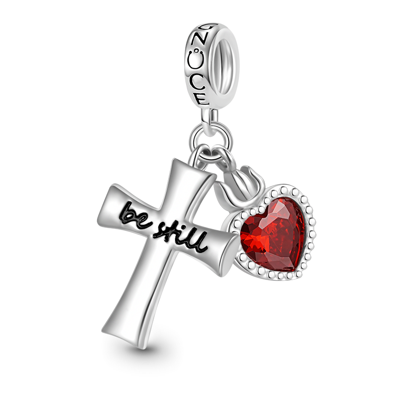 Gnoce "Be still" Cross & Heart Double Pendant Dangle Charm