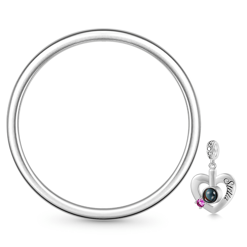 Gnoce Birthstone Heart Engravable Projection Photo Pendant Dangle Charm