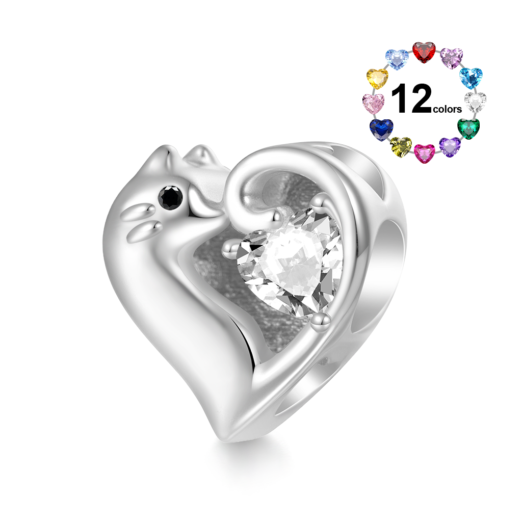 Gnoce Cat Love Heart Engravable Birthstone Charm