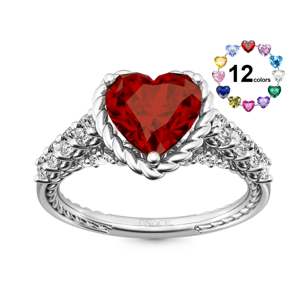 Gnoce Heart Vintage Cathedral Birthstone Engagement Ring