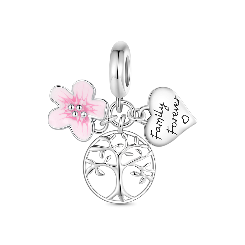 Gnoce Pink Flower Tree of Life Heart Triple Pendant Dangle Charm
