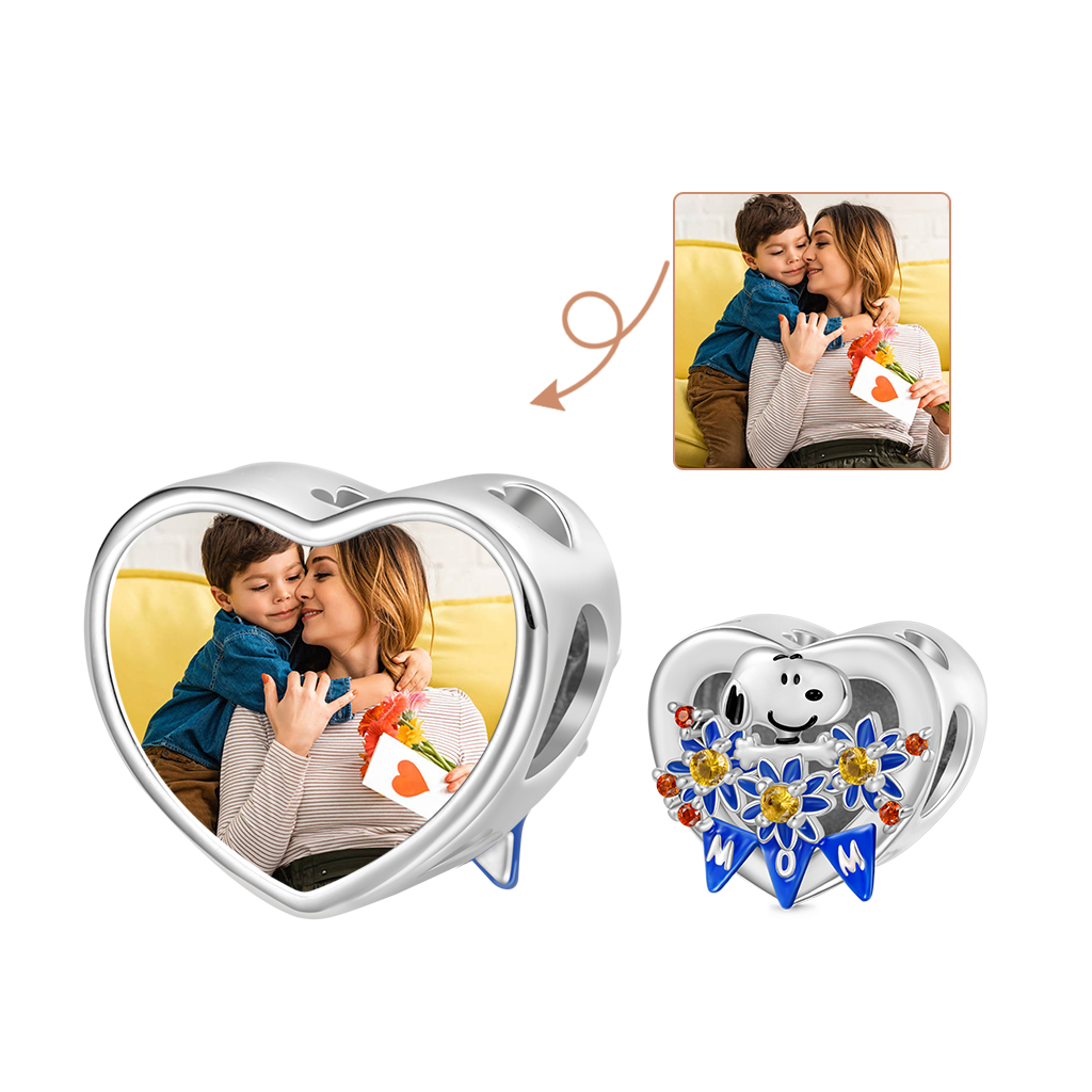 Gnoce Peanuts 'Flowers for Mom' Snoopy Heart Personalized Photo Charm
