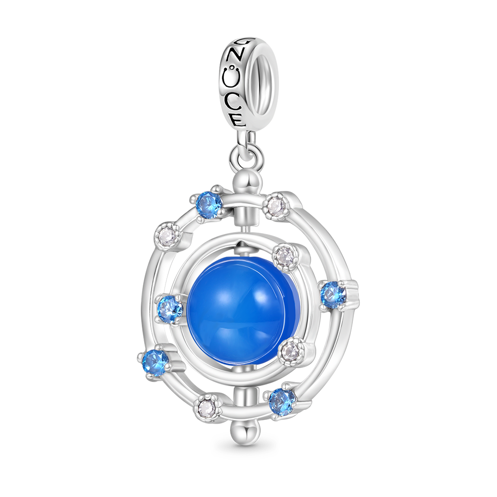Gnoce Rotatable Natural Blue Agate Galaxy Pendant Dangle Charm