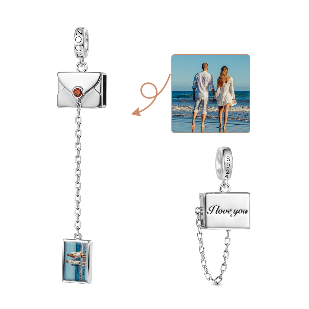 Gnoce Personalized Photo Secret Love Envelope Pendant Dangle Charm