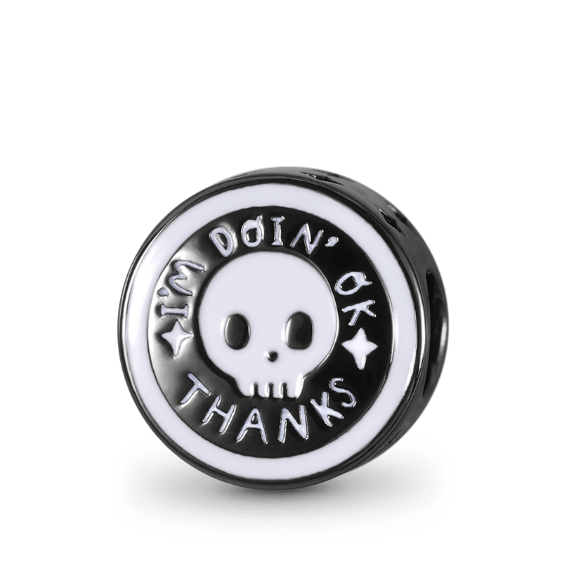 The Sad Ghost Club-Skelly "I'M DOIN' OK, THANKS" Skull Charm Bead Sterling Silver