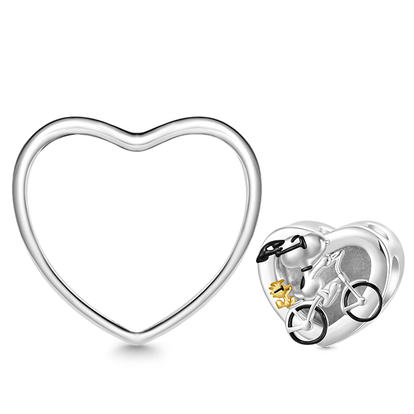 Gnoce Peanuts Woodstock & Snoopy Riding Bike Photo Charm